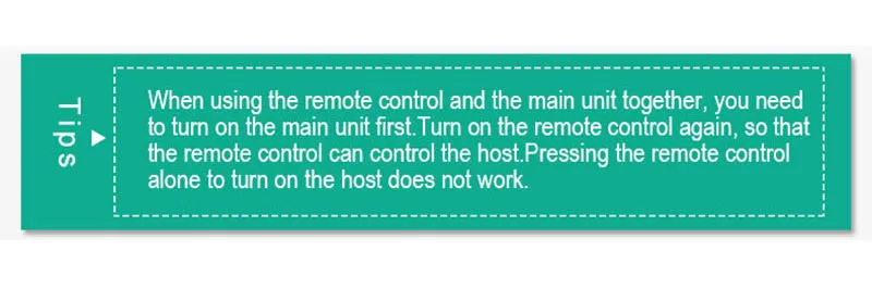 When the remote control and the host are used together, you need to turn on the host first, and then turn on the remote control, so that the remote control can control the host. Pressing the remote control alone to turn on the host does not work!