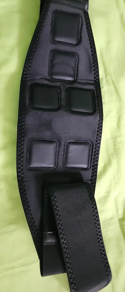 the belt is of very high quality, the sensors are covered with leather which makes it reusable, not silicone strips that need to be replaced every two weeks, soaked with water and can be used, took it for the waist to massage the back muscles, and I will tell you that it helps…
